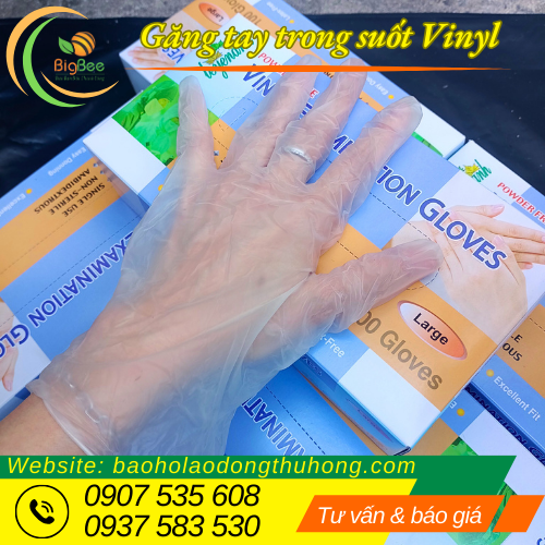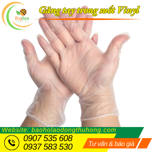 Găng tay cao su trong suốt Vinyl có bề mặt trong suốt, mỏng, trọng lượng nhẹ, ôm sát tay. Ở phần cổ tay còn được thiết kế thêm chun để chống trơn tuột khi thao tác.