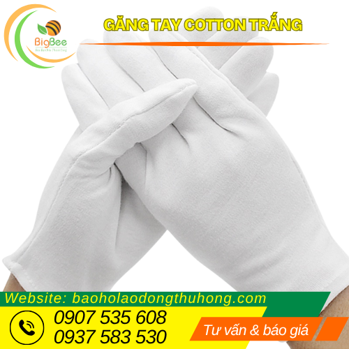 Găng tay cotton trắng là sản phẩm không thể thiếu trong các ngành nghề cần bảo vệ tay khi làm việc nhẹ như: kiểm hàng, đóng gói, làm vườn, phòng sạch, công nhân kho, lắp ráp điện tử, v.v...