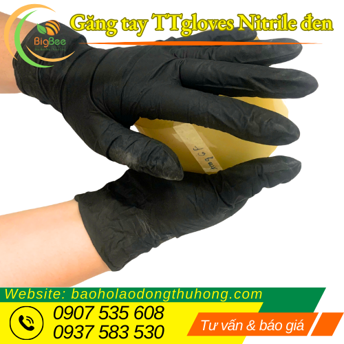 - Găng tay y tế TT Gloves Nitrile màu đen có khả năng chống đâm thủng vượt trội gấp 3 lần găng tay cao su Latex.