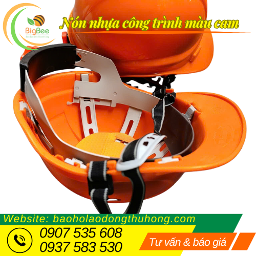 Nón nhựa công trình màu cam chắc chắn, an toàn khi sử dụng trong lao động