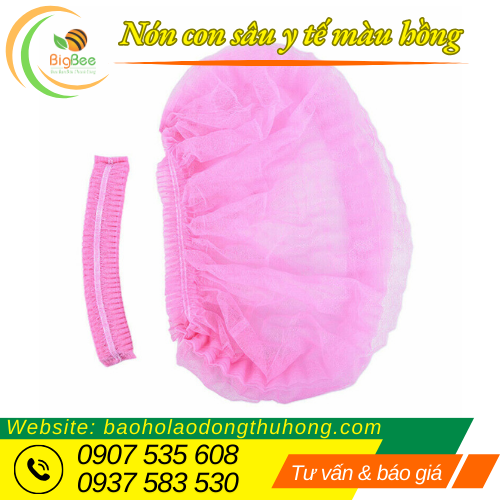 Nón con sâu y tế màu hồng là sản phẩm an toàn, đạt đủ tiêu chuẩn an toàn để sử dụng trong lĩnh vực lao động, đặc biệt là ở những nơi yêu cầu độ sạch, không bụi. Nón dùng để bọc và cố định riêng cho phần tóc, dễ sử dụng, hiệu quả bảo vệ cao.