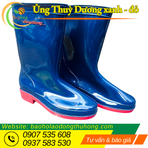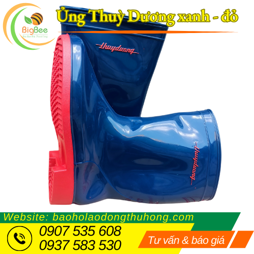 Ủng Thùy Dương màu xanh dương đế đỏ chống thấm nước rất tốt, không bị nước và hoá chất ăn mòn. Do đó sản phẩm thích hợp dùng trong các mục đích như đi mưa, lội bùn, đánh bắt cá thuỷ sản, làm vườn, chăn nuôi gia súc gia cầm...
